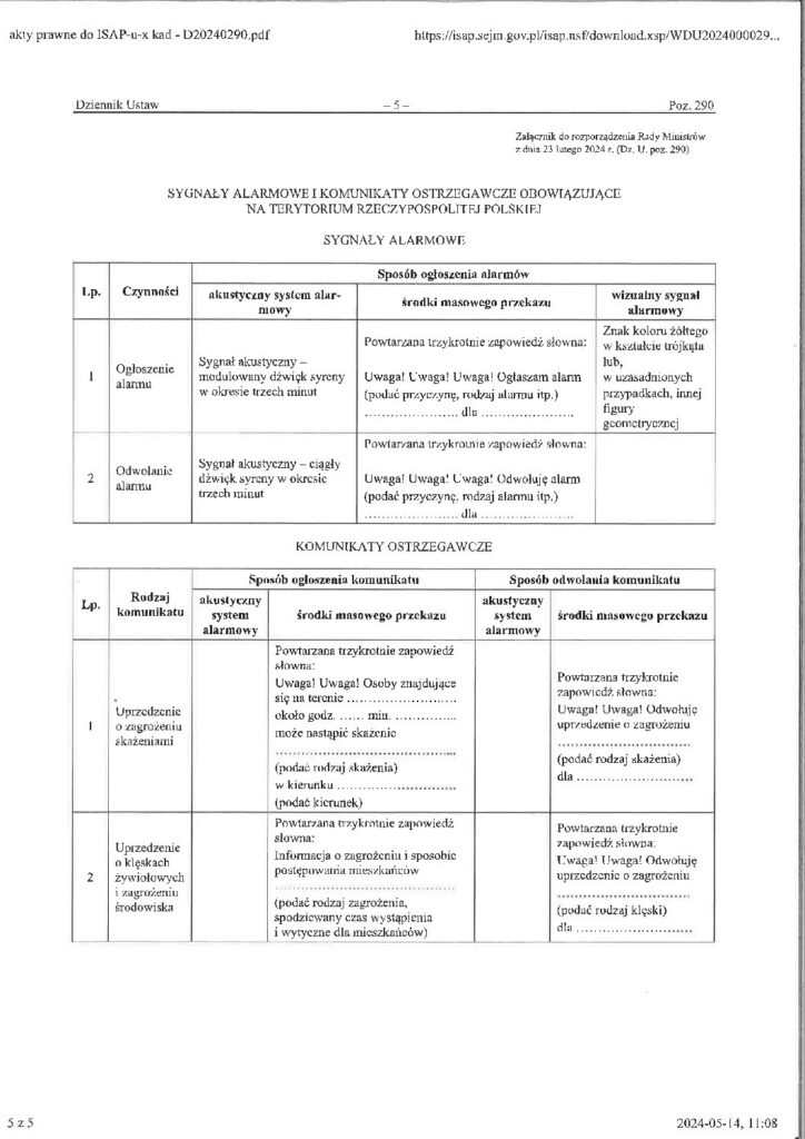 INFORMACJA NA TEMAT SYGNAŁÓW ALARMOWYCH I KOMUNIKATÓW OSTRZEGAWCZYCH NA TERYTORIUM RZECZYPOSPOLITEJ POLSKIEJ